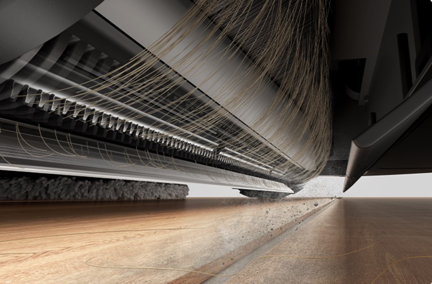 Обновленная система с мелкозубчатой структурой защищает от запутывания волос и делает уход за устройством более простым. В то же время все элементы выполнены с учетом безопасности — контакт с лезвиями исключен, это важно, если дома есть дети или животные. Прорезиненная полоска под углом 50° улучшает контакт с полом и направляет пыль прямо в контейнер. Зубцы расположены на выверенном расстоянии от 0,4 до 0,05 мм.