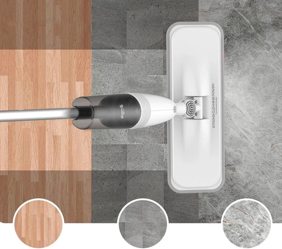 Deerma Spray Mop White сочетает инновационные решения и практичность: простое наполнение резервуара, точное распыление, легкий вращающийся стержень и прочные материалы делают уборку быстрой и комфортной. Это идеальный выбор для ежедневного ухода за любым полом – ламинатом, плиткой или паркетом.