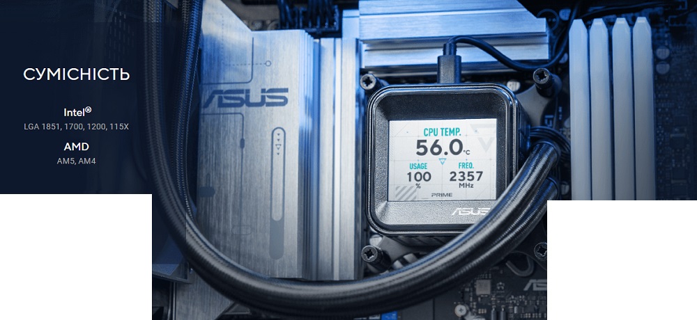 Кулер Prime LC 360 ARGB LCD оснащений трубками завдовжки 400 мм, при цьому вони сумісні з різними платформами Intel® і AMD, що забезпечує гнучкість у виборі.