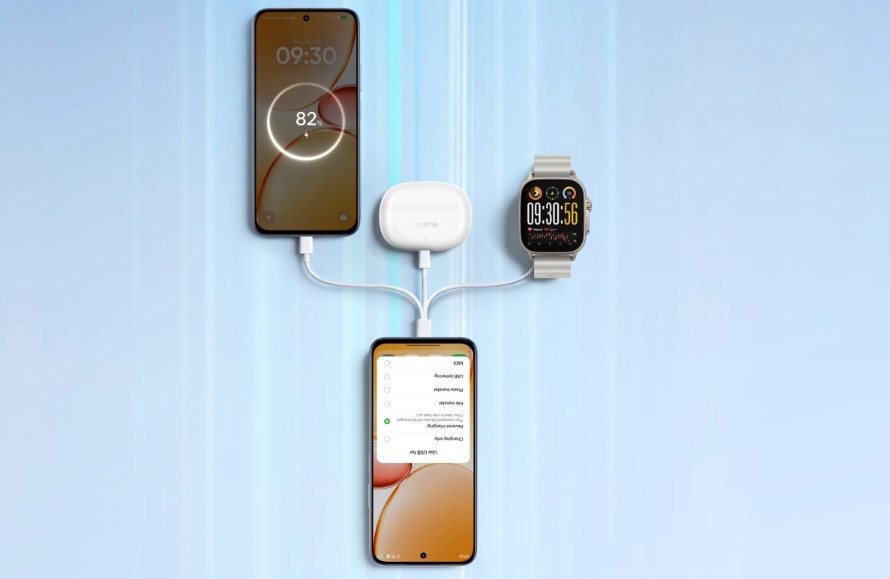 Realme C85 может использоваться как портативный источник питания. Вы можете подзарядить беспроводные наушники, смарт-часы или другой телефон в дороге. Это удобно во время путешествий или длительного пребывания вне дома.