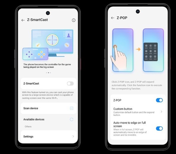 Функции Z-Smart Cast и Z-Pop упрощают взаимодействие со смартфоном и расширяют его возможности.