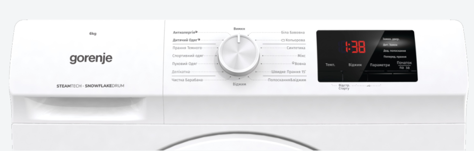 Gorenje WHE60SFS оснащена удобной панелью управления.