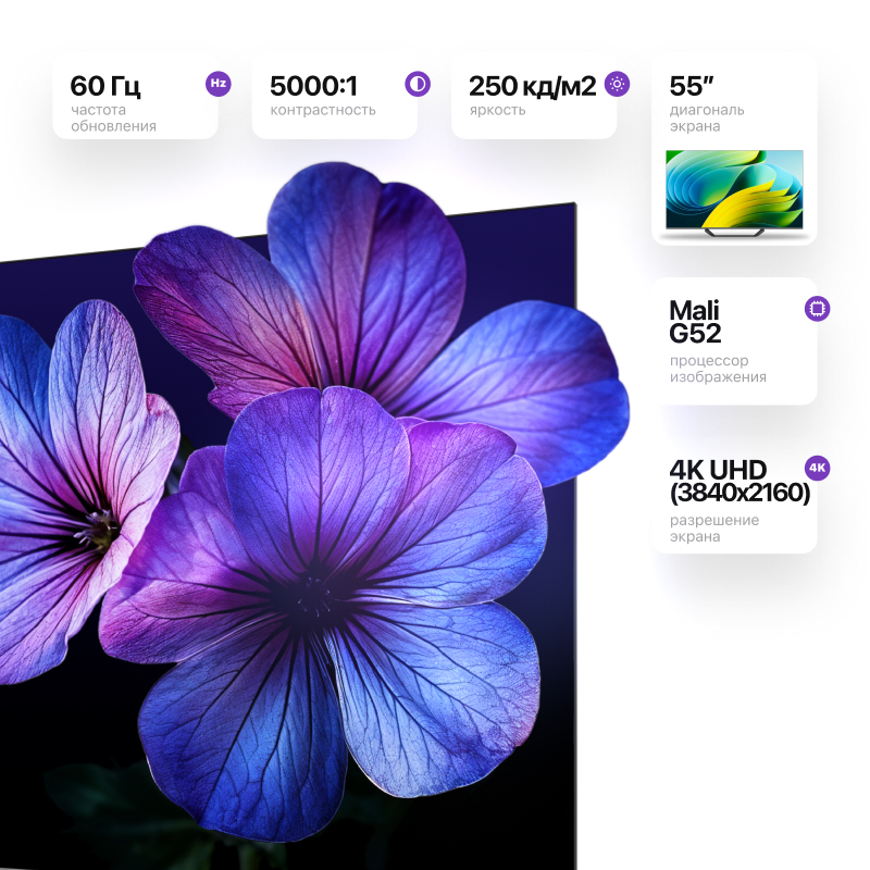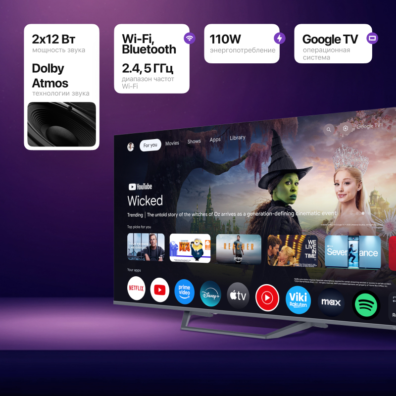 Google TV меняет представление о просмотре: все ваши стриминговые сервисы, прямые каналы и приложения собраны в одной интуитивной платформе. Персональные рекомендации, доступ к более чем 10 000 приложениям — среди которых Netflix, Disney+, Prime Video, YouTube, Apple TV, HBO Max — и поддержка Google Assistant обеспечивают быстрый доступ к любому контенту одним нажатием кнопки или голосовой командой.