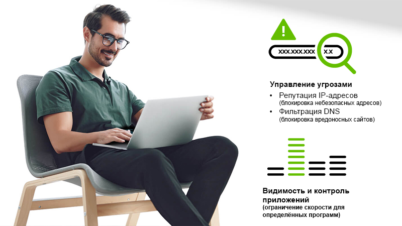 - Видимость и контроль приложений (ограничение скорости для определённых программ)