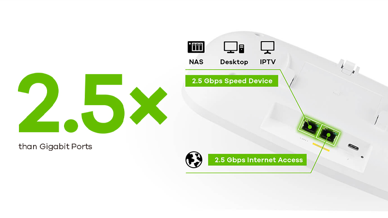 Два порта 2.5GbE позволяют получить скорость, превышающую стандартный гигабит. Это недорогой способ обновить вашу сеть, чтобы в полной мере насладиться производительностью Wi-Fi 7. Порты легко интегрируются с имеющейся инфраструктурой, и вы можете гибко настраивать их под свои потребности.
