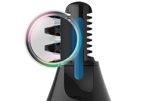 Триммер для носа, ушей и бровей разработан с учетом безопасности и удобства пользователя. Защитная система покрывает лезвия, предотвращая прямой контакт с кожей. Это позволяет уменьшить количество пропущенных волосков и исключить щипание или натягивание, обеспечивая легкое и эффективное подстригание.