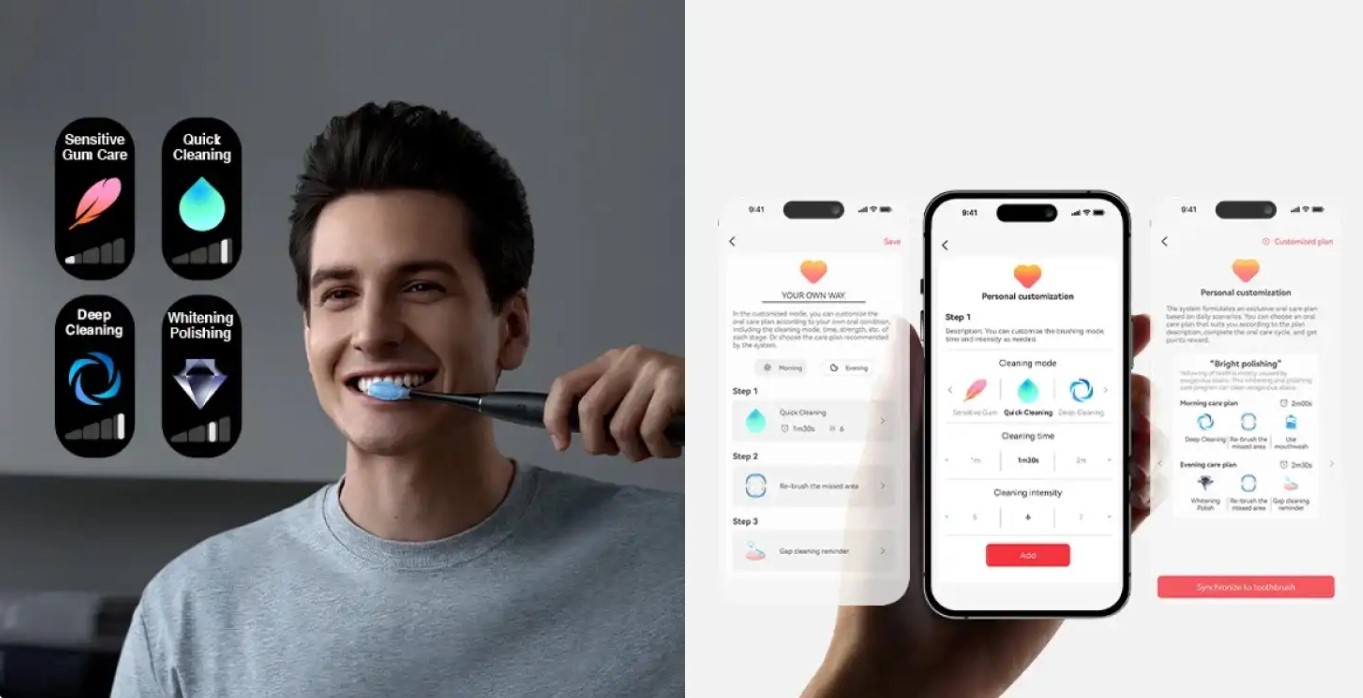 Oclean X Pro 20 предлагает интеллектуальное управление чисткой, выходящее за пределы стандартных функций обычной зубной щетки. Устройство оснащено четырьмя предварительно установленными режимами для ежедневной, деликатной, интенсивной и полировальной очистки, а также позволяет создавать персональные планы с помощью алгоритмов искусственного интеллекта. Технология AI анализирует ваши движения, силу нажатия и продолжительность сеансов, формируя оптимальный распорядок для утренней и вечерней чистки. Такой подход гарантирует полную и равномерную очистку, защиту эмали и здоровье десен, адаптируя процесс под индивидуальные потребности пользователя. Благодаря этому Oclean X Pro 20 превращается в полноценную систему профессионального ухода, обеспечивая максимальную эффективность и контроль в ежедневной гигиене полости рта.