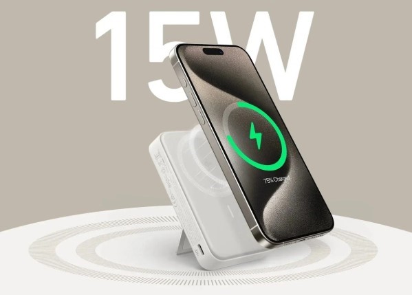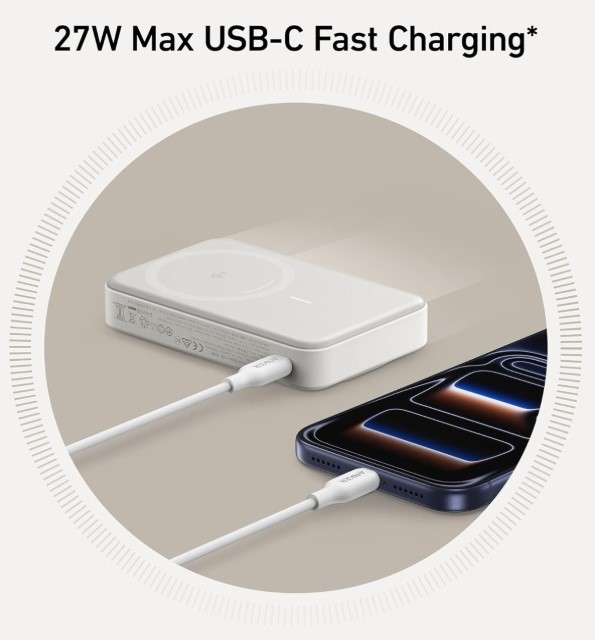 Благодаря порту USB-C Anker MagGo позволяет быстро заряжать смартфоны и сам павербанк. При мощности 27 Вт iPhone 15 может зарядиться примерно до 60% всего за 30 минут.