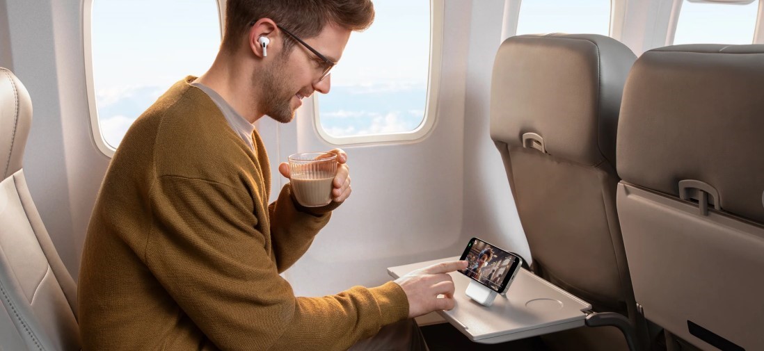 Встроенная откидная подставка позволяет устанавливать смартфон вертикально или горизонтально во время беспроводной зарядки, что удобно для просмотра контента или видеозвонков.