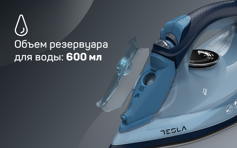 Большой резервуар для воды объемом 600 мл позволяет гладить дольше без необходимости частого доливания. Вы можете справиться с большим количеством белья за один раз — это экономит время и делает подготовку одежды значительно проще.