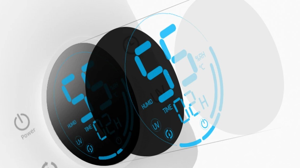 LED-панель увлажнителя отображает все ключевые параметры работы в реальном времени. Когда необходимо создать темноту для сна или релакса, подсветку дисплея можно легко отключить одним нажатием. Такая функция позволяет сохранять комфорт и удобство управления без дополнительного светового дискомфорта.