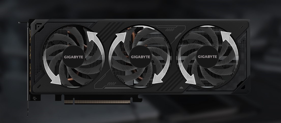 Система охлаждения WINDFORCE обеспечивает исключительную тепловую эффективность благодаря сочетанию передовых технологий. Она включает теплопроводящий гель серверного класса, инновационные вентиляторы Hawk с попеременным вращением, композитные медные тепловые трубки, большую медную пластину, 3D-активные вентиляторы и технологию Screen Cooling.