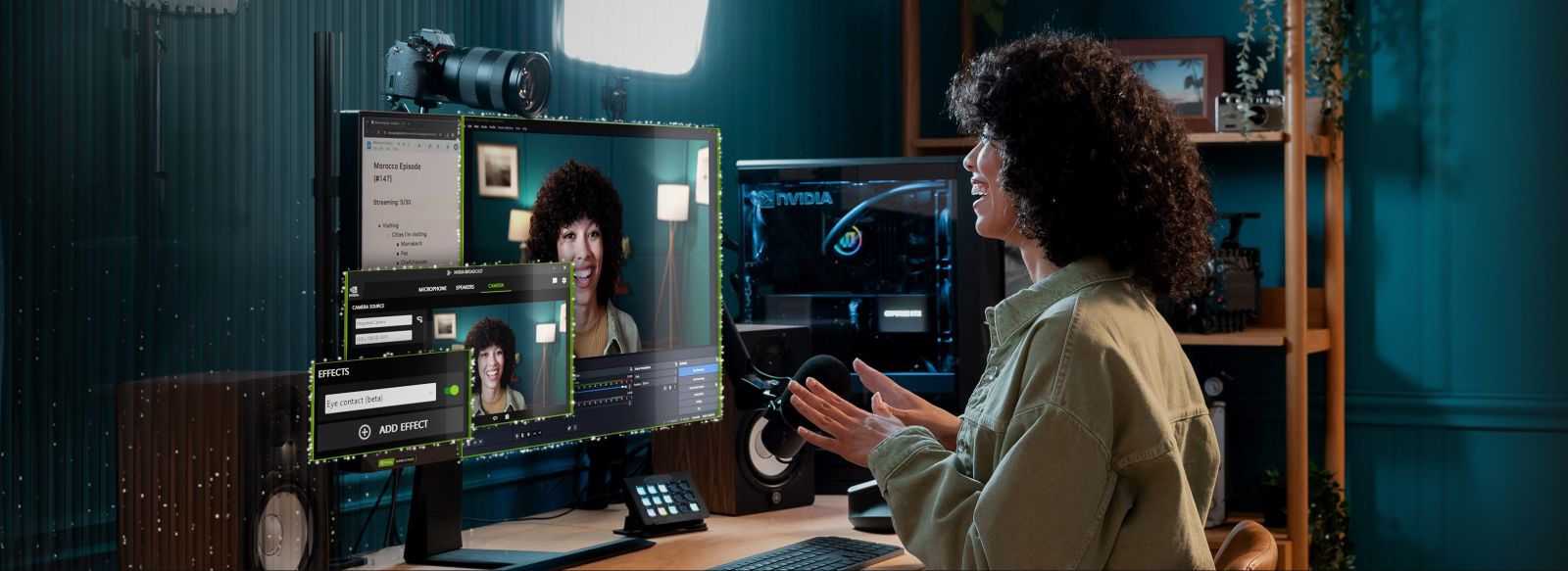 NVIDIA Studio — это ваше творческое преимущество. Графические процессоры GeForce RTX 50 Series открывают трансформационную производительность в видеомонтаже, 3D-рендеринге и графическом дизайне. Получите ускорение RTX в ведущих творческих приложениях, драйверы NVIDIA Studio мирового класса, разработанные и постоянно обновляемые для максимальной стабильности, а также набор эксклюзивных инструментов, использующих мощность RTX для творческих процессов с поддержкой ИИ. Выведите свои стримы, голосовые чаты и видеозвонки на новый уровень с улучшением голоса и видео с помощью ИИ. Устраните фоновый шум, настройте фон и многое другое одним нажатием кнопки.