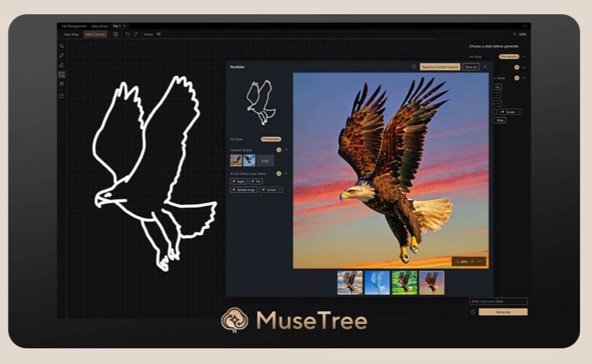 MuseTree — программа для создания изображений на базе ИИ, разработанная для вдохновения вашей креативности. Легко создавайте и управляйте изображениями и визуальными идеями, открывая бесконечные новые источники вдохновения благодаря интуитивно понятному визуальному интерфейсу.