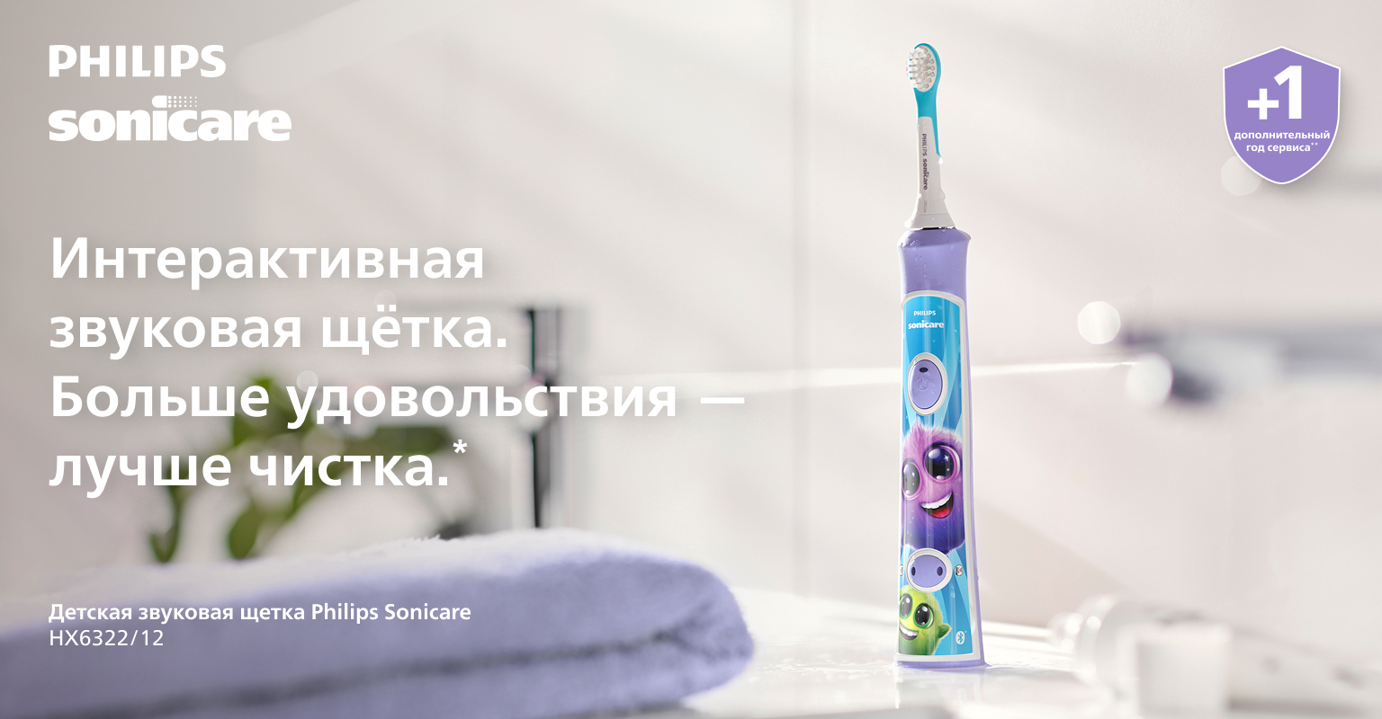 Дети учатся чистить зубы, а наша звуковая технология выполняет остальную работу. Динамичные движения электрической зубной щётки Philips Sonicare For Kids мягко и эффективно очищают межзубные промежутки и участки вдоль линии дёсен.