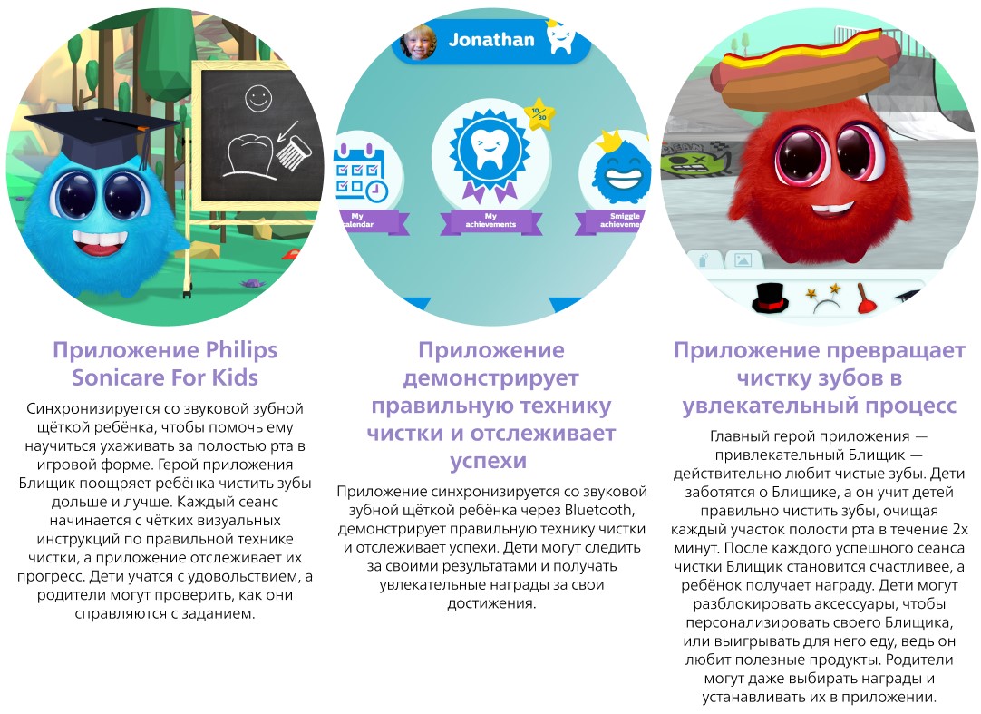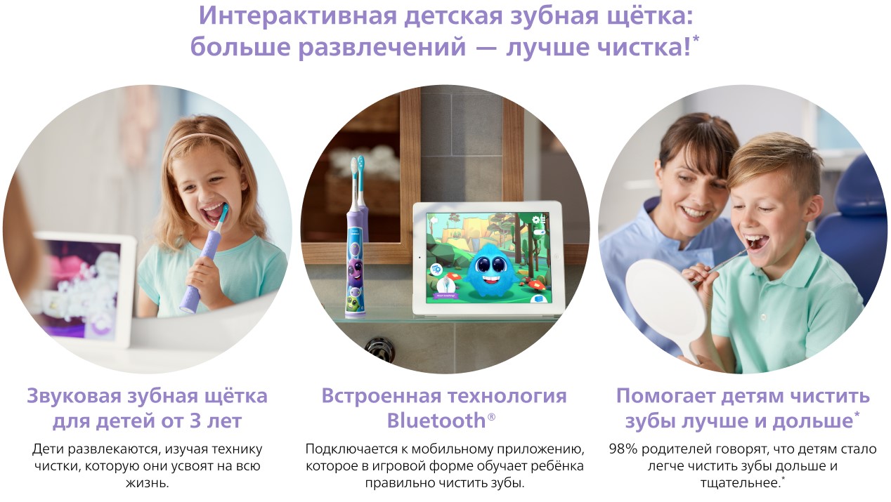 Для обеспечения правильной чистки электрическая зубная щётка Philips Sonicare For Kids с поддержкой Bluetooth подключается к приложению и помогает детям постепенно увеличивать продолжительность чистки, чтобы достичь рекомендованной стоматологами продолжительности чистки — 2 минуты.