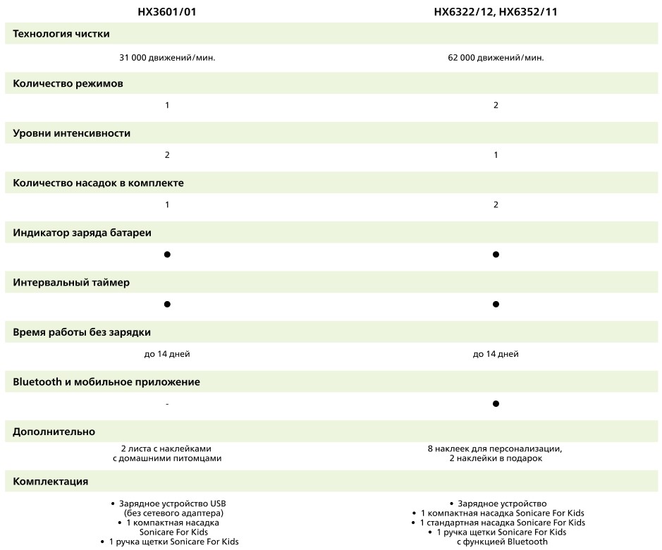 | Комплектация: | зубная щетка, 1 стандартная насадка Sonicare for Kids, 1 компактная насадка Sonicare for Kids, 8 индивидуальных наклеек, 2 наклейки в подарок |