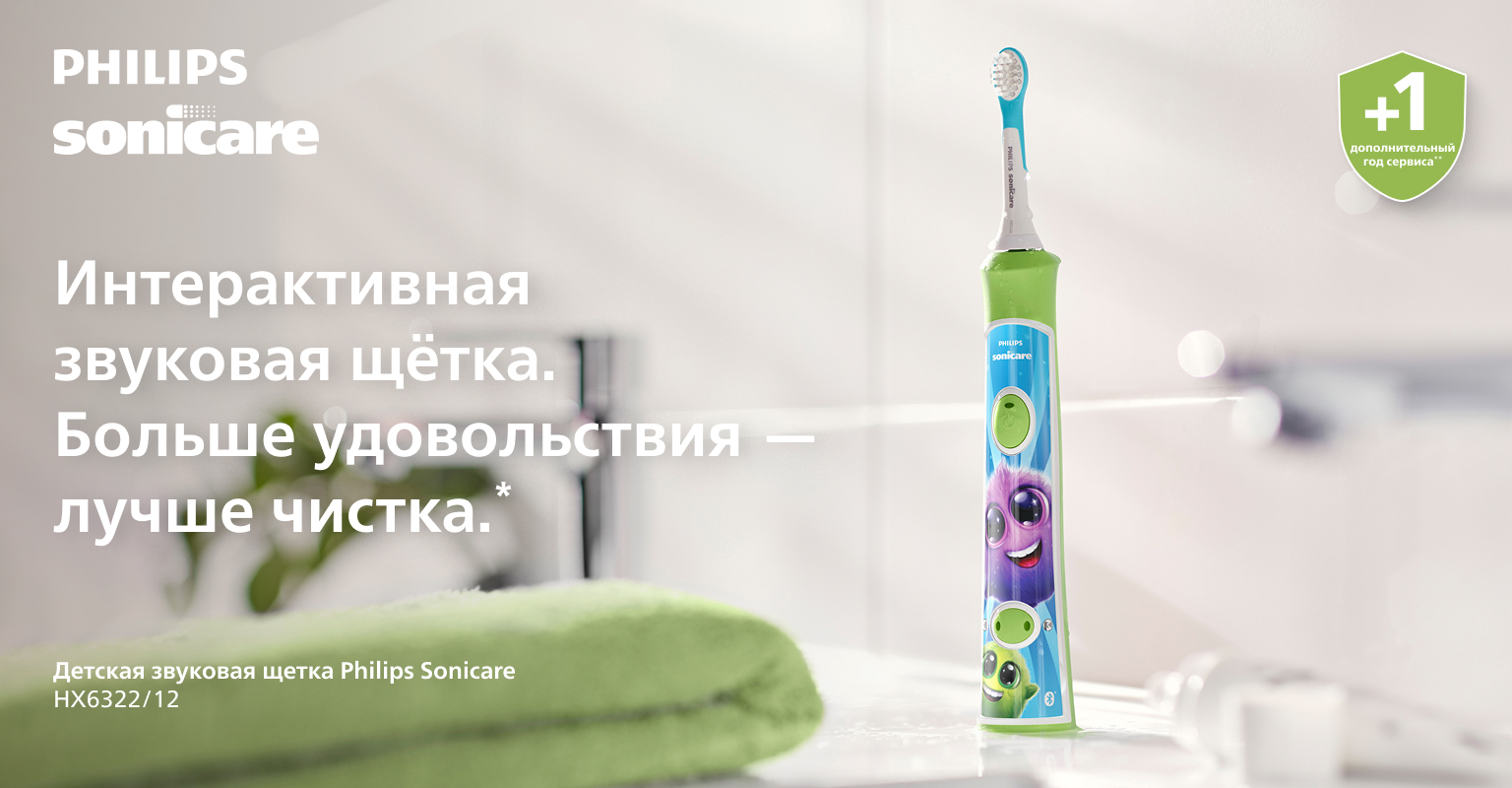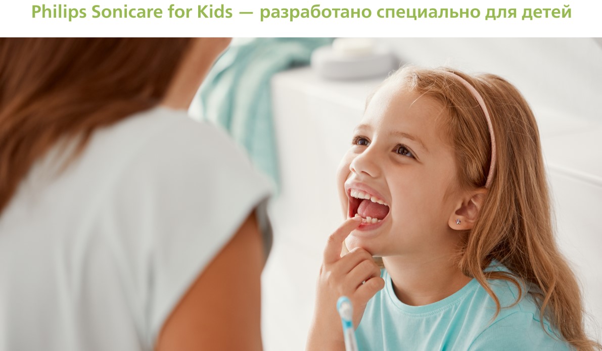 Дети учатся чистить зубы, а наша звуковая технология выполняет остальную работу. Динамичные движения электрической зубной щётки Philips Sonicare For Kids мягко и эффективно очищают межзубные промежутки и участки вдоль линии дёсен.