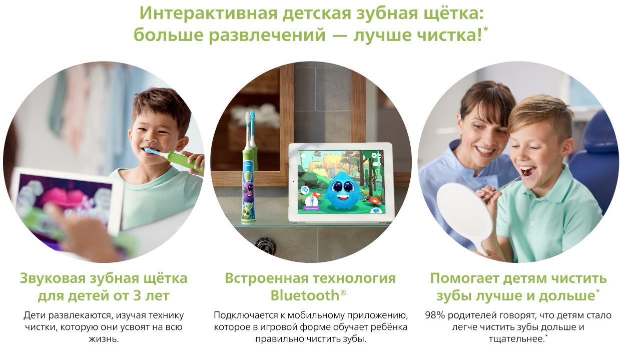 Для обеспечения правильной чистки электрическая зубная щётка Philips Sonicare For Kids с поддержкой Bluetooth подключается к приложению и помогает детям постепенно увеличивать продолжительность чистки, чтобы достичь рекомендованной стоматологами продолжительности чистки — 2 минуты.