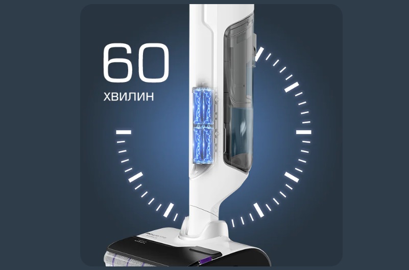 Бездротове прибирання, що забезпечує до 60 хвилин роботи для очищення будь-яких зон.
