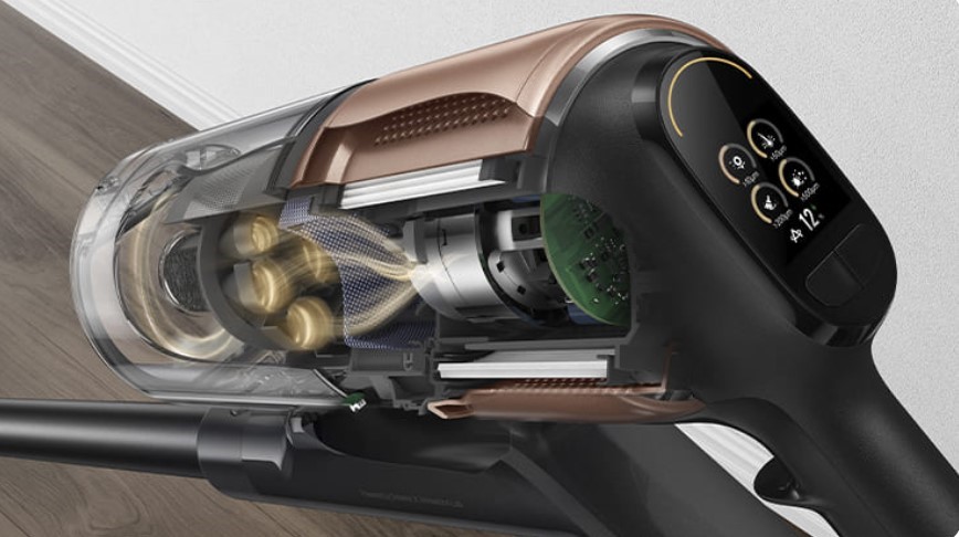 Dreame Z20 оснащений яскравим ЖК-дисплеєм, на якому відображаються основні показники роботи пилососа - рівень заряду батареї, сила всмоктування та стан прибирання. Це допомагає легко стежити за процесом і робить прибирання більш зручним та ефективним.