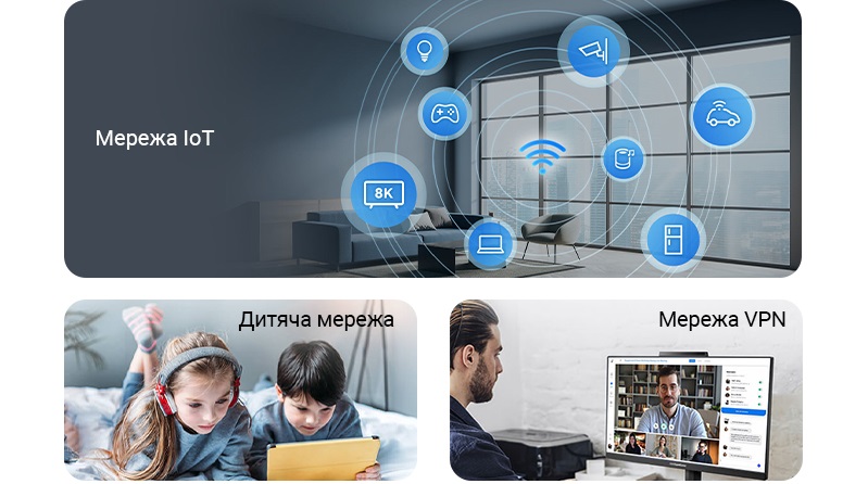 Налаштуйте всі свої пристрої IoT і керуйте ними в захищеній мережі з окремим іменем (SSID), щоб забезпечити підвищену безпеку та захист комерційного рівня.