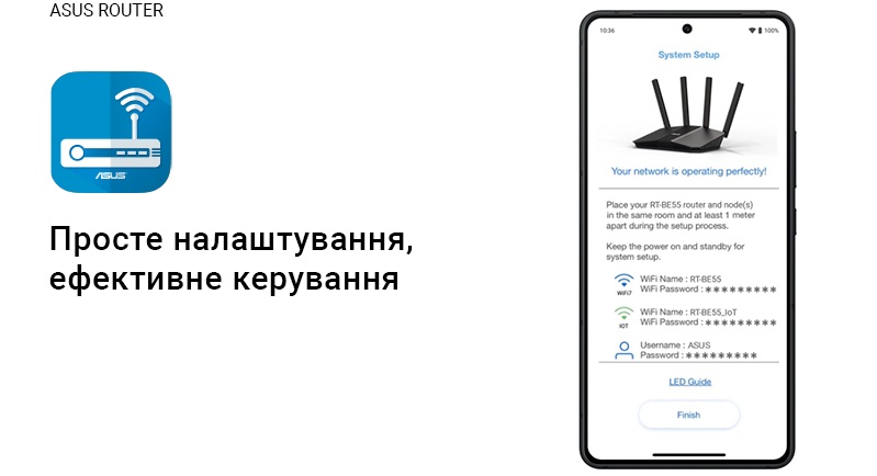 ASUS Router – це інтуїтивно зрозумілий мобільний застосунок для налаштування параметрів мережі Wi-Fi прямо зі смартфона. Просто дотримуйтеся вказівок на екрані, і ви швидко почнете працювати!