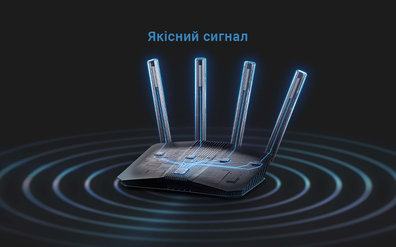 Мережа Wi-Fi, створена на основі ASUS RT-BE55, відзначається швидкістю й надійністю. Завдяки чотирьом зовнішнім антенам і чотирьом потужним інтерфейсним модулям маршрутизатор усуває мертві зони, забезпечуючи якісний сигнал в усіх напрямках.