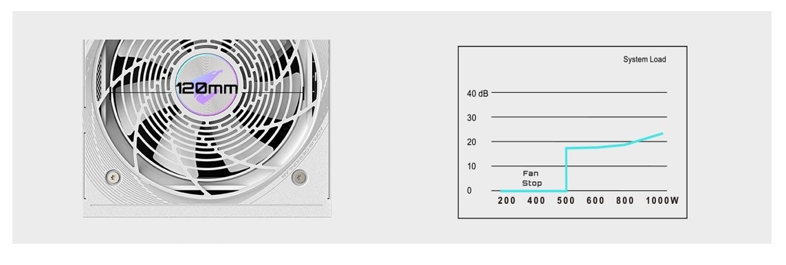 Високопродуктивний вентилятор з гідродинамічним підшипником використовує технологію амортизації масляною плівкою для ефективного зниження шуму, що робить його тихішим за звичайні вентилятори з втулкою та забезпечує більш ніж удвічі довший термін служби. Крім того, швидкість вентилятора регулюється відповідно до автоматичного визначення потужності та зупиняється, коли система перебуває в режимі очікування або під низьким навантаженням (менше 50%).