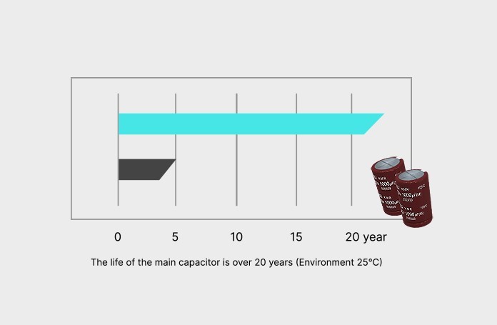 Усі конденсатори є високоякісними японськими конденсаторами, що забезпечує ефективну роботу та забезпечує тривалішу надійність.