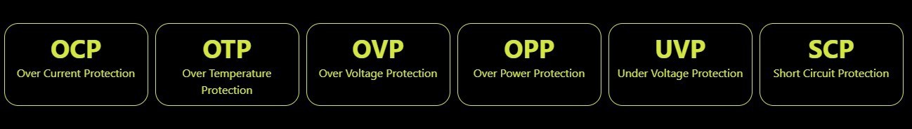 Щоб забезпечити безпечну та стабільну роботу всієї системи в будь-який час, блок живлення оснащений низкою захисних механізмів, що забезпечують вам максимальний спокій.