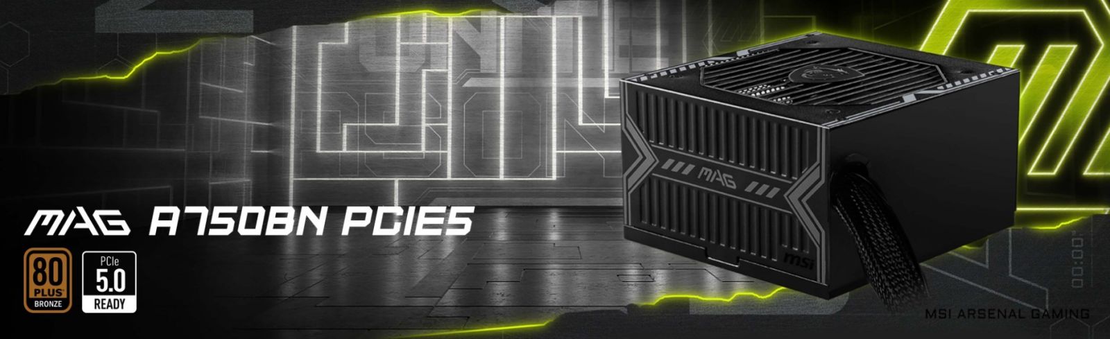 Корпус MAG вирізняється характерними графічними елементами, які підкреслюють міцність і злагодженість системи. MAG A750BN PCIE5 поєднує у собі високий запас потужності та продуману конструкцію, що дає змогу використовувати його в сучасних продуктивних конфігураціях.