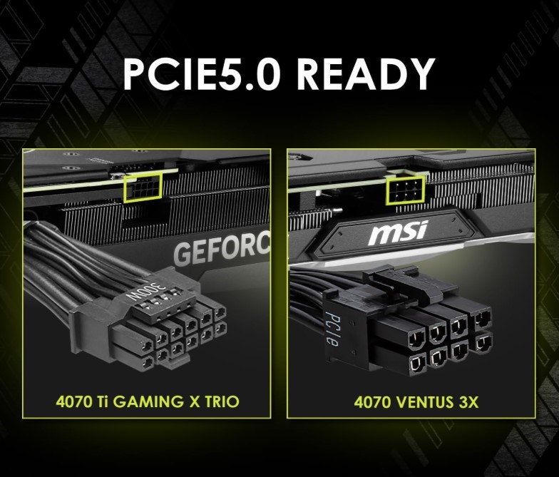 Блок живлення оснащено спеціальним роз’ємом, який підтримує стандарт PCIe 5.0. Це дозволяє підключати відеокарти нового покоління, зокрема з серії RTX 4070* та інші сучасні моделі, забезпечуючи стабільне живлення та надійну роботу.