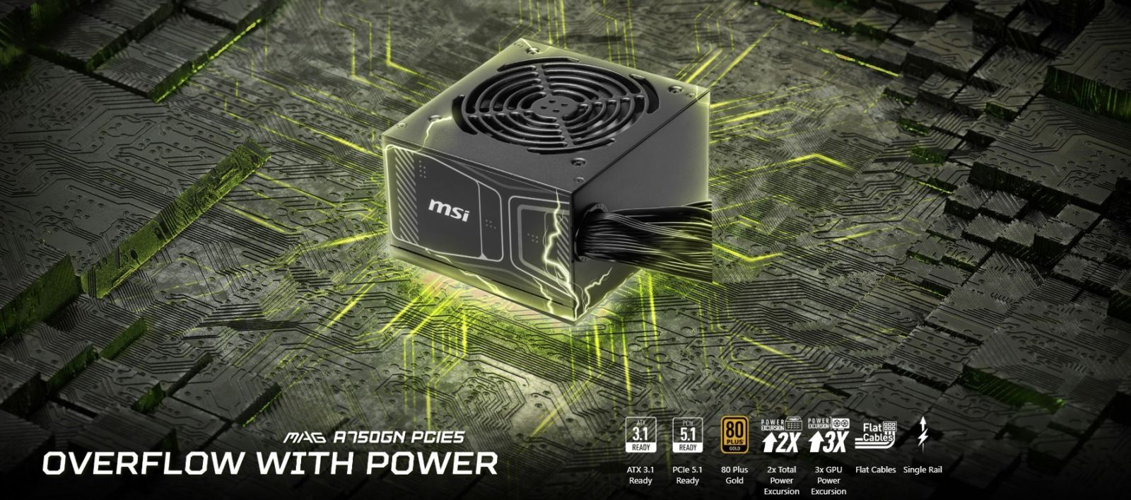 MSI MAG A750GN PCIE5 750W отримав сертифікацію 80 PLUS Gold, що гарантує оптимальне співвідношення між енергоспоживанням і продуктивністю. Завдяки цьому блок живлення витрачає менше електроенергії та забезпечує стабільну роботу системи навіть під значними навантаженнями.