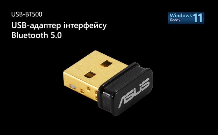 ASUS USB-BT500 дозволяє наділити комп’ютер інтерфейсом Bluetooth, призначеним для бездротового підключення периферійних пристроїв, як-от: динаміки, навушники та ігрові контролери. Інтерфейс представлений новітньою версією 5.0, яка відзначається у два рази більшою швидкістю передачі даних і в чотири рази більшим діапазоном дії в порівнянні з попередньою.