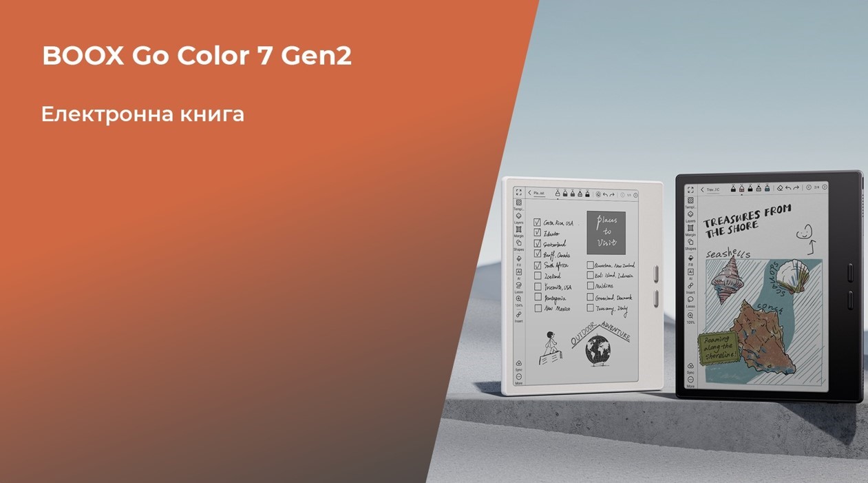 BOOX Go Color 7 Gen2 поєднує зручність, продуктивність і комфорт для очей, роблячи читання приємним у будь-якій ситуації. З Go Color 7 Gen2 файли відкриваються швидко, сторінки перегортаються без затримок, а зображення залишається чітким як для навчальних матеріалів, так і для художніх книг.