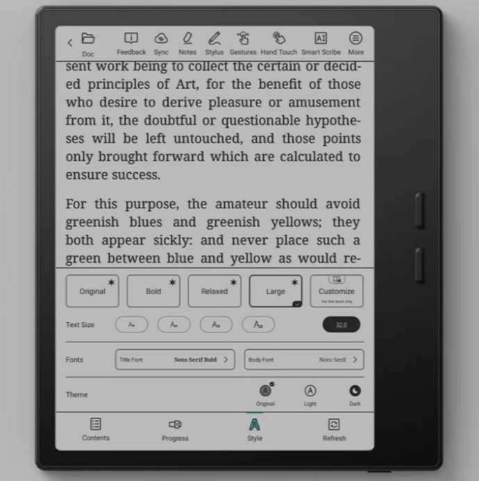 BOOX Go Color 7 Gen2 відкриває десятки форматів, включно з EPUB, PDF, CBR та CBZ, без конвертації. Можна змінювати шрифт, розмір тексту, поля, орієнтацію сторінки, додавати закладки і нотатки — все швидко і інтуїтивно.