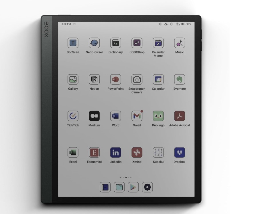 Робота на базі Android 12 відкриває можливість встановлення сторонніх програм. Це розширює функціональність рідера і дозволяє використовувати його не лише для читання, а й для роботи з документами, комунікації та організації навчального процесу.