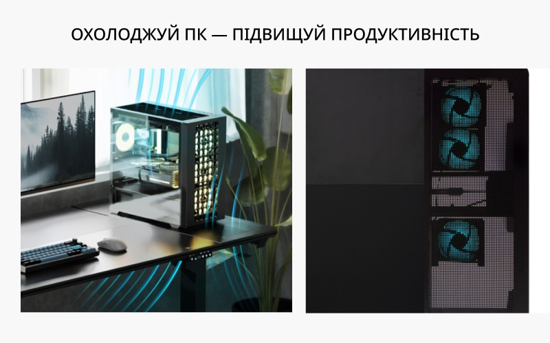 Охолоджуй ПК — підвищуй продуктивність. Покращений повітряний потік із сітчастою боковою панеллю