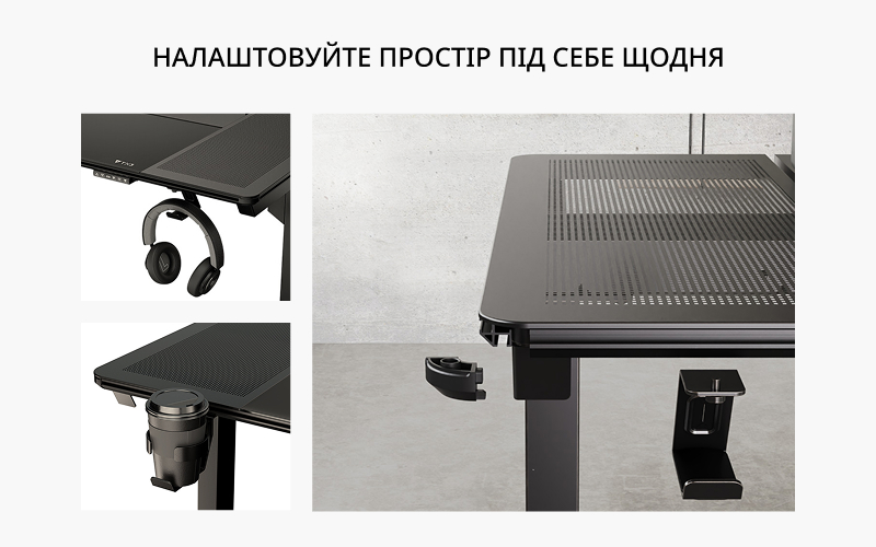 Стильний дизайн, інтуїтивне керування. Стільниця зі зоною загартованого скла для миші