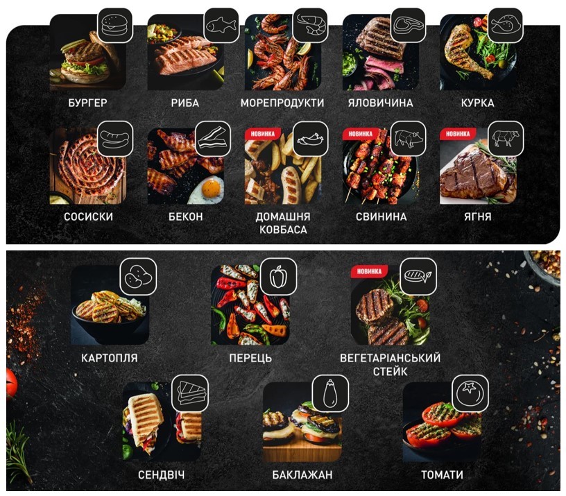 10 програм для м’яса та риби й 6 режимів для овочів і сендвічів відкривають безмежні можливості для щоденного грилювання без повторів.