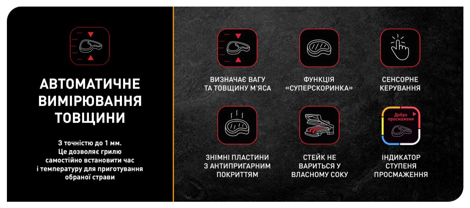 Функція «Суперскоринка» створює хрустку скоринку та зберігає м’ясо соковитим і ніжним, щоб кожен стейк був ідеальним, як у стейк-хаусі.