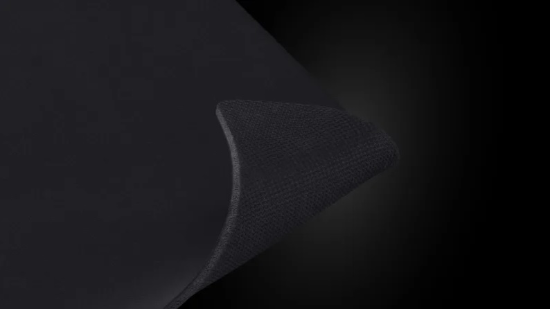 Гумова основа, міцно прикріплена до тканини, утримує гнучку поверхню на місці та запобігає зминання тканини перед мишею, що заважає плавному руху миші. М'яка тканина підвищує комфорт, коли зап'ястя рухається вперед і назад по краю килимка для миші.