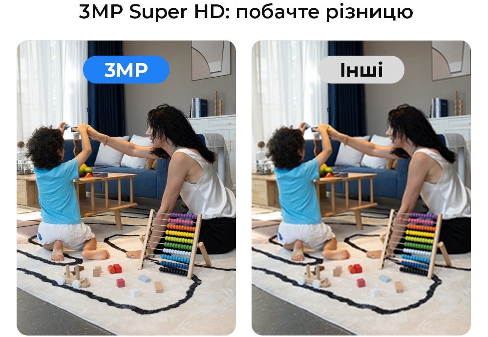 Отримайте зображення, яке значно чіткіше, ніж 1080p. Роздільна здатність 3 мегапікселі дозволяє розгледіти найдрібніші деталі та не пропустити жодного важливого моменту в житті вашої родини.