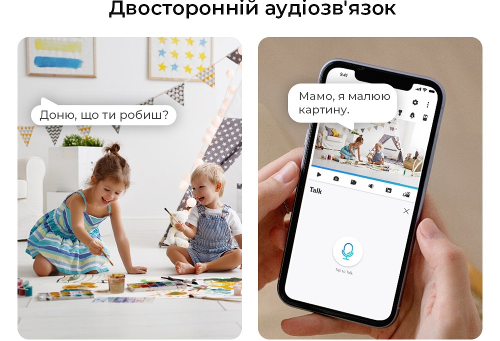 Вбудовані мікрофон і динамік дозволяють вам спілкуватися в реальному часі з близькими. Заспокойте дитину, поговоріть з улюбленцем або дайте вказівки няні, перебуваючи далеко від дому.