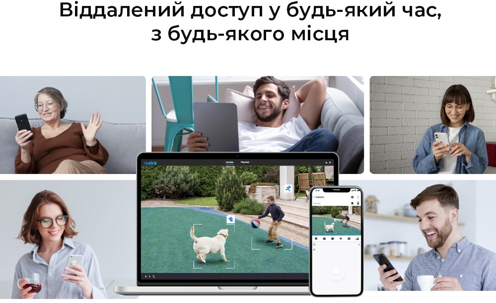 Дивіться пряму трансляцію або записи зі свого смартфона, планшета чи комп'ютера. Залишайтеся на зв'язку з домом, де б ви не знаходились, через безкоштовний додаток Reolink.