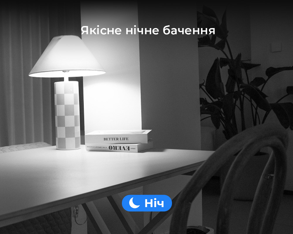 Вбудовані інфрачервоні світлодіоди забезпечують чіткий чорно-білий огляд у повній темряві. Ви можете бути спокійні, контролюючи ситуацію в домі навіть вночі.