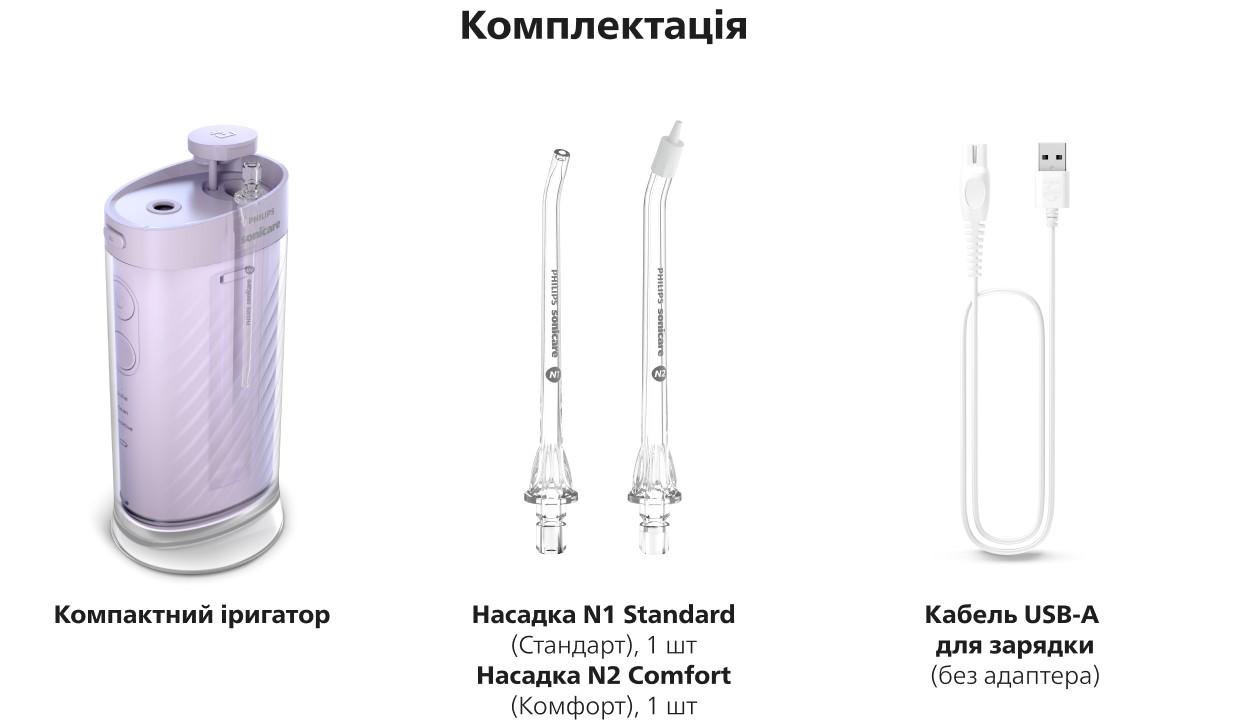 Іригатор Philips Sonicare серії 1000 працює до 14 днів без підзарядки*** — ідеально в дорозі. Легко заряджається вдома або за допомогою USB-A кабелю під час поїздок.