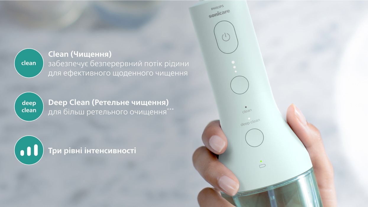 Для максимально ретельного чищення обирайте насадку F3 Quad Stream, яка, завдяки хрестоподібному потоку води у чотирьох напрямках, охоплює максимальну площу міжзубних проміжків та ясен.