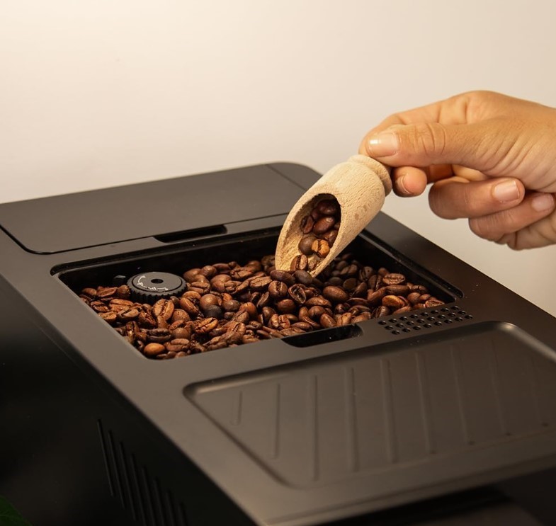 Ємність для кавових зерен об’ємом 150 г оснащена щільною кришкою, яка запобігає потраплянню повітря та зберігає аромат і свіжість зерен. Вбудована кавомолка з можливістю регулювання ступеня помелу дозволяє обрати потрібну текстуру меленого зерна - від дрібного для еспресо до грубішого для американо.